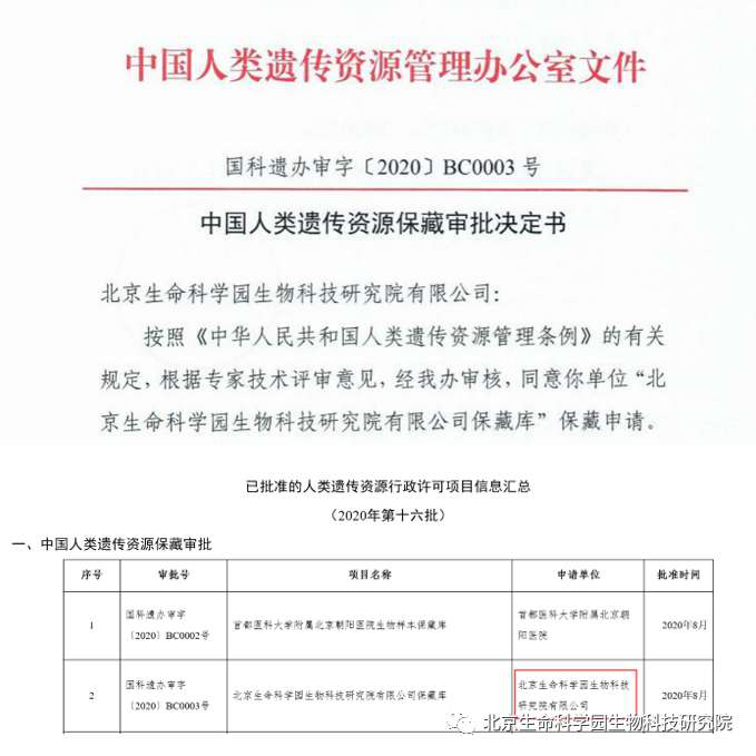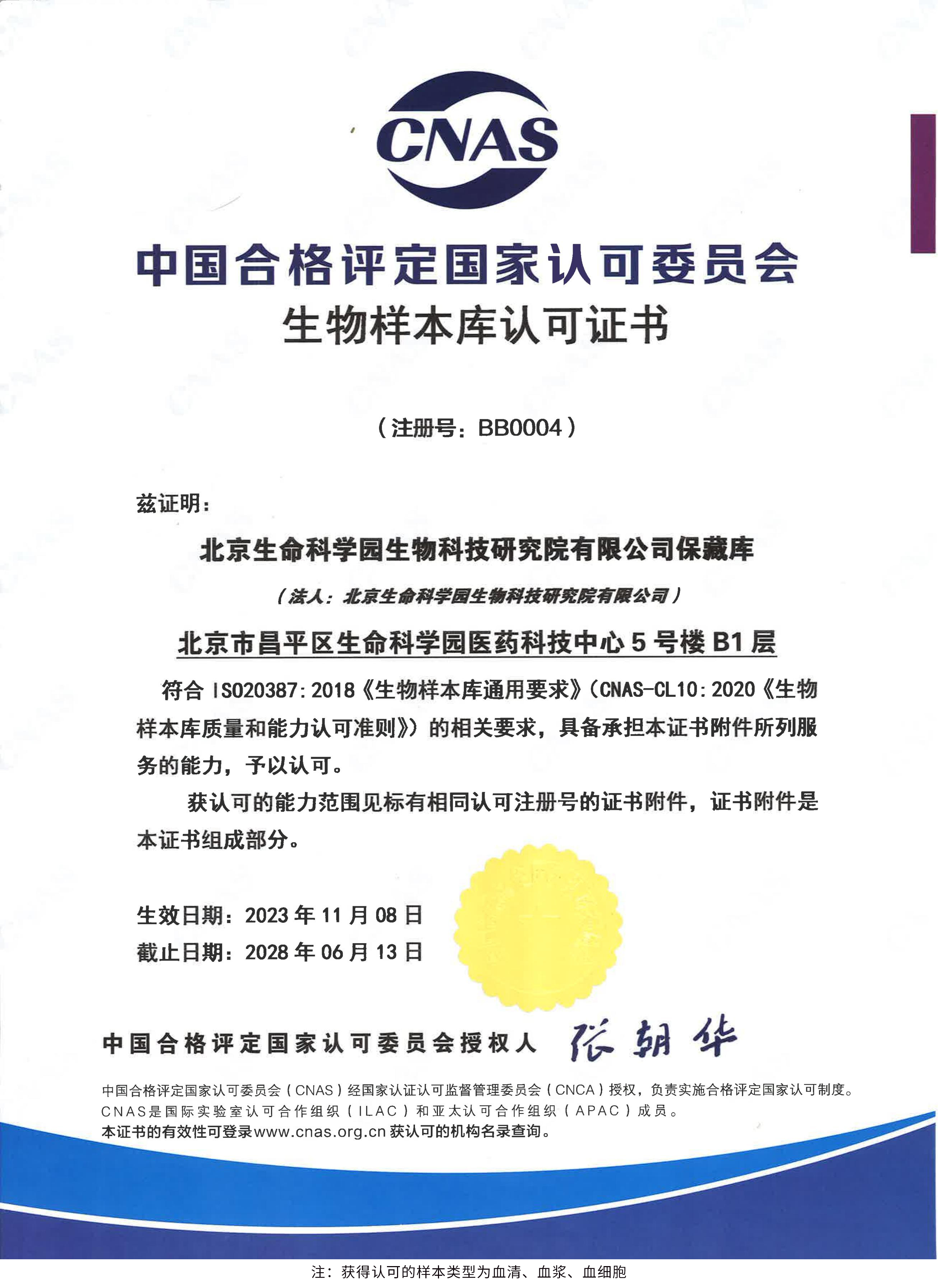 北京生命科學園生物科技研究院(以下簡稱“北京生物樣本資源庫”)(Biobank of Life Science Park,簡寫“BoLSP”)是一家由北京市科委和中關(guān)村生命科學園共同支持設(shè)立的第三方生物樣本庫公共服務(wù)平臺,秉承北京重大疾病臨床數(shù)據(jù)和樣本資源庫(以下簡稱“北京庫”)(Beijing Biobank of Clinical Resources,BBCR)十余年的發(fā)展成果,聚合眾多臨床樣本專家的專業(yè)共識,致力于在生命科學、生物醫(yī)藥研究領(lǐng)域發(fā)揮銜接樣本資源持有者與研究者的橋梁作用,解決生物樣本資源開發(fā)上下游信息不對稱、資源共享困難等問題。研究院在北京中關(guān)村生命科學園昌平園區(qū)建立了2000㎡生物樣本庫,最大存儲規(guī)模達1000萬份。研究院遵循CNAS-CL10:2020《生物樣本庫質(zhì)量和能力認可準則》,同時結(jié)合北京庫過去十年的工作經(jīng)驗與教訓,建立了一套完善的生物樣本保藏質(zhì)量管理體系,從人、機、料、法、環(huán)、控多個角度,實現(xiàn)生物樣本保藏過程的全面質(zhì)量控制,先后獲得國家科技部頒發(fā)的人類遺傳資源保藏行政許可證書和中國合格評定國家認可委員會(China National Accreditation Service for Conformity Assessment,CNAS)頒發(fā)的“CNAS認可證書”。